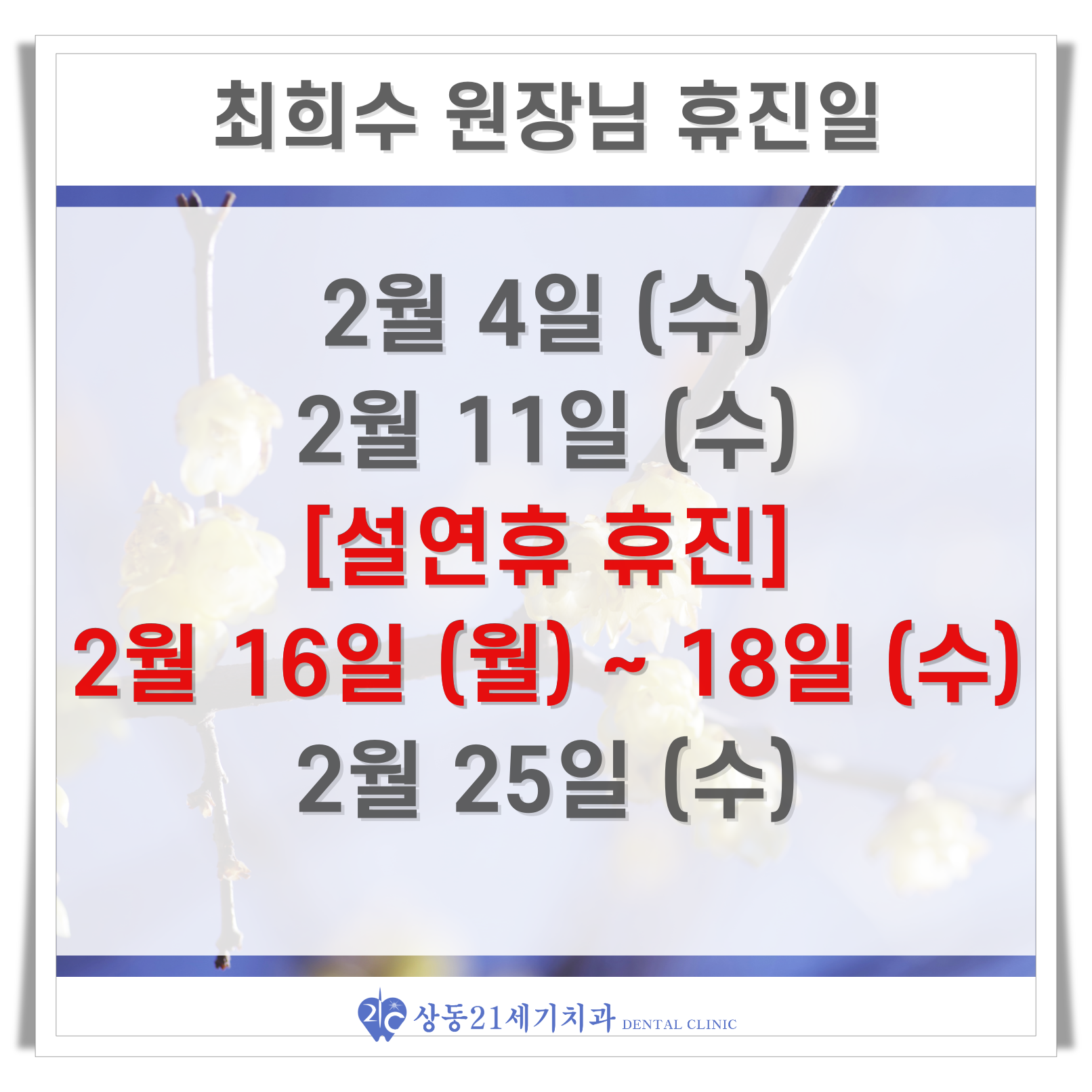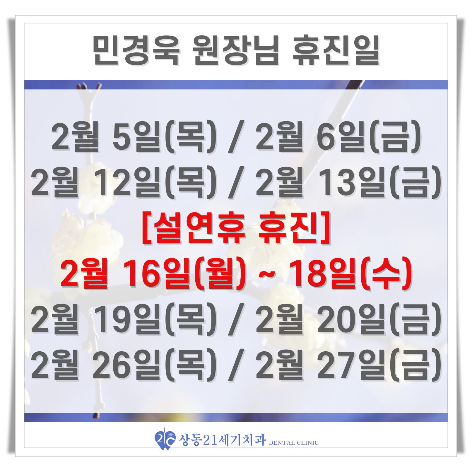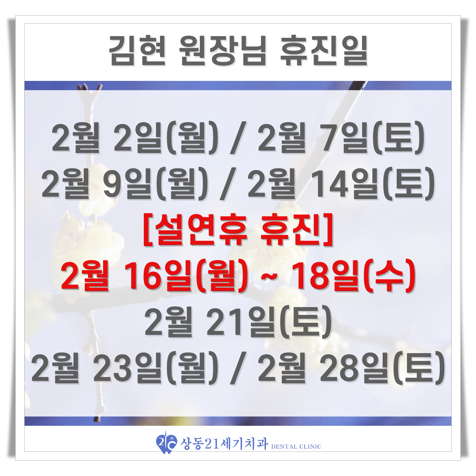 ?다가오는 2월 상동21세기치과 진료 일정 안내드리겠습니다.