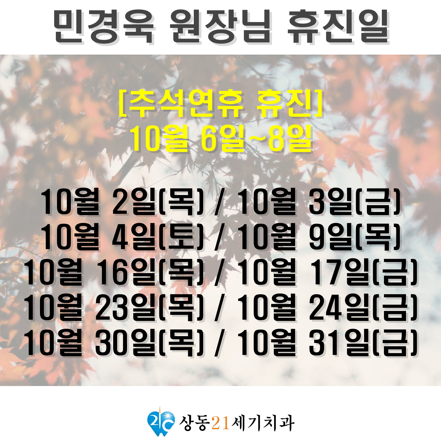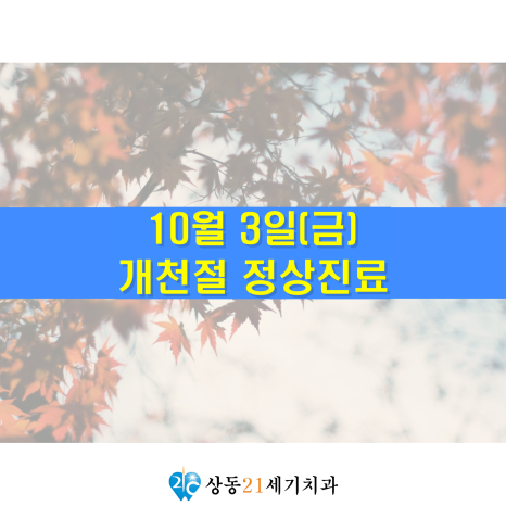 다가오는 10월, 상동21세기치과 진료 일정 안내드리겠습니다.