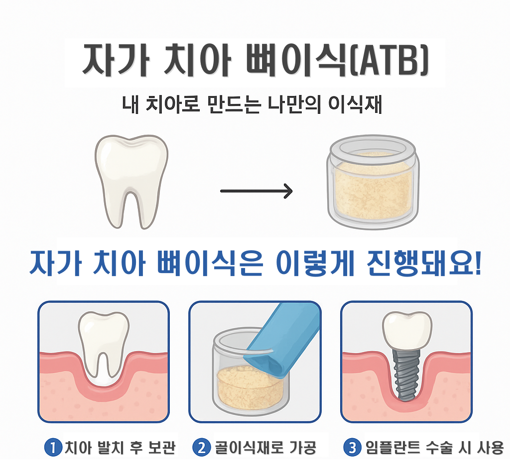 "자가 치아 뼈이식(ATB)"은 발치한 자신의 치아를 특수한 과정으로 가공하여